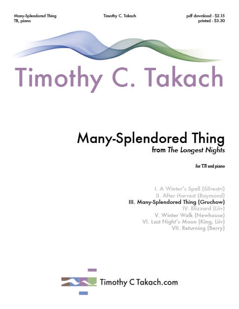 A goblin and nymph are arguing about glass beads – this piece will be a ton of fun to put together. The notes are accessible, but the singers will have to count! A delightful piece to add to a concert program, this will delight your singers and surprise your audience