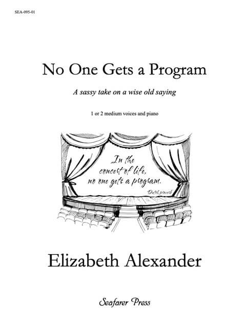 Elizabeth Alexander (b. 1962) grew up in the Carolinas and Appalachian Ohio. Her love of music, language and challenging questions is reflected in her catalog of over 100 songs and choral works, and a style which moves effortlessly between concert stage, choir loft and jam session. Her music has been performed by soloists, chamber musicians...
