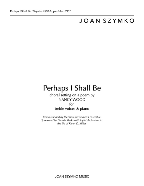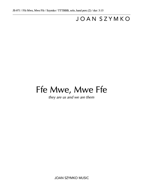Szymko’s embodied approach to sound, dedication to craft, and insistence on quality texts— all relate to her focus as a conductor and are reflected in her choral compositions. Her settings do not have a readily recognizable, “sound” but consistently display a discerning, insightful marriage of words and music. Her primary intention is to always illuminate and magnify the words she sets.