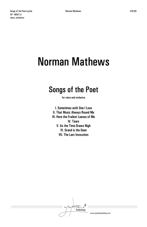 Norman Mathews’ Rossetti Songs, to Christina Rossetti poetry for mezzo-soprano, piano, flute, and cello, was recorded by Navona Records (NV5827). His art songs have been performed at the Kennedy Center. Ye Are Many—They Are Few, Cantata for a Just World, for four singers and piano, received a Puffin Foundation grant and was premiered at The Chicago Cultural Center by Vox3 in May 2014. Sonnet No. 61 (part of a 3-sonnet cycle to Shakespeare, entitled Love’s Not Time’s Fool) for mixed choir, piano, and oboe obbligato is the winner of the American Composers’ Forum 2011 VocalEssence Award. In 2011, Mathews was composer-in-residence at Shorter University, where he was commissioned to write a chamber opera, Flights of the Heart, which was performed by faculty members on a concert devoted exclusively to his music.