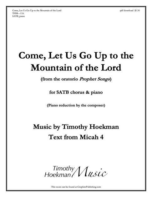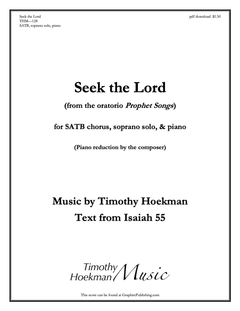 The full piano/vocal score of Prophet Songs and the orchestral score and parts are available from the composer at timothyhoekman@gmail.com.