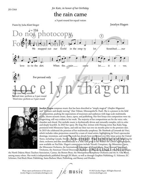 Jocelyn Hagen composes music that has been described as “simply magical” (Fanfare Magazine) and “dramatic and deeply moving” (Star Tribune, Minneapolis/St. Paul). She is a pioneer in the field of composition, pushing the expectations of musicians and audiences with large-scale multimedia works, electro-acoustic music, dance, opera, and publishing. Her first forays into composition were via...