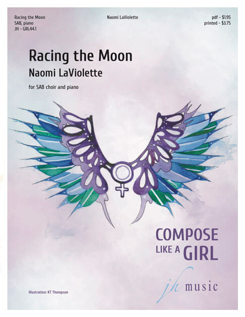 With text adapted from poetry by my daughter, Lucia LaViolette, the first half of “Racing The Moon” addresses the common struggles of proving oneself, getting ahead, and the angst of comparison. Through minor dissonance and regular occurrences of 2 against 3 rhythms, the music expresses the contrast of rigid striving with fluid, more circular movement. As the song gives way to a major key modulation and change to compound meter, the second half settles into a state of flow. The text invites us to focus on the present moment and participate in the exciting race of life as an ongoing communal dance and song, rather than a competition to be won or lost. Read Lucia’s full poem on the final page of the score.